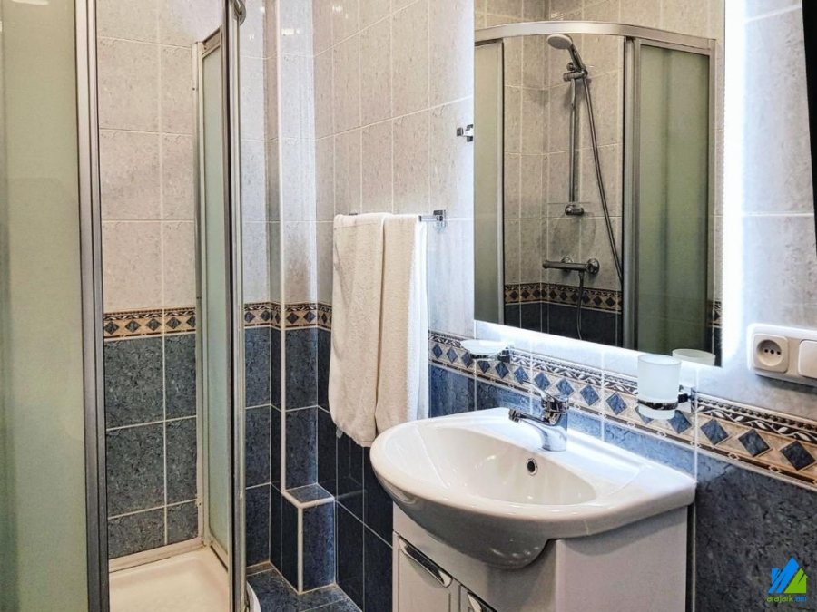 3-storey new house for sale in Sayat-Nova Avenue (second line) The rooms' quantity is 10. The house is newly renovated. The entrance door is iron-made, the windows are euro-based, the floor is covered by parquet, solid granite. The bathrooms (5) are combined and modern tiled. The house has a stone fence, a balcony, beautiful yard (60 sq.m), a storage-room (83 sq.m), heating system and is supplied with constant water and gas. It is being sold with furniture and electronic devices.