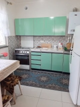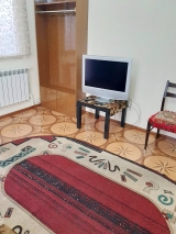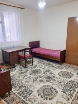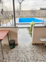 1-storey house for rent in Tbilisyan Highway. The rooms' quantity is 4(a hall and 3 bedrooms). The house is cosmetically renovated, and is located on the second line. The entrance door is iron-made, the windows are wooden-based, the floor is covered by solid granite and is tiled. The bathroom is combined and newly tiled. The house has a terrace, swimming pool, stone fence, heating system and is supplied with constant water and gas. It is being rented with furniture and technique.