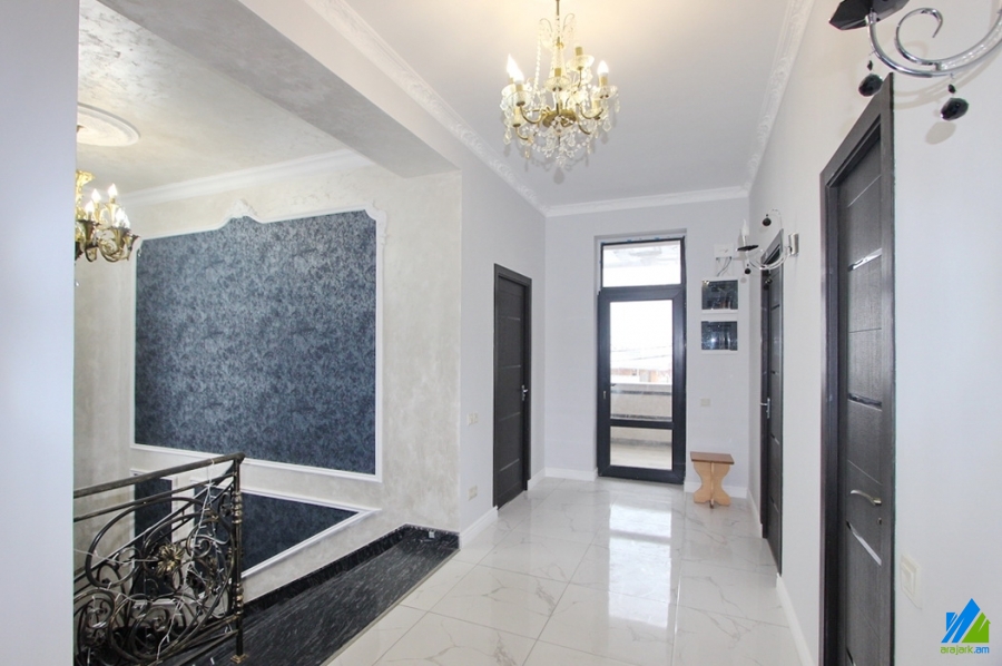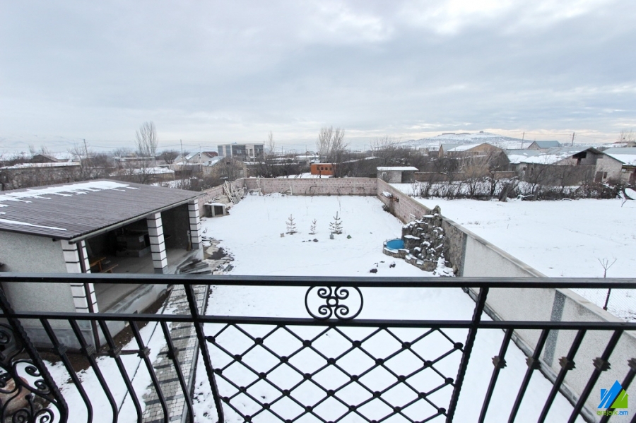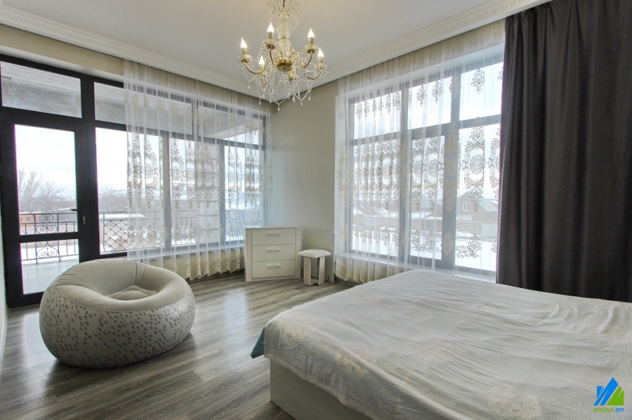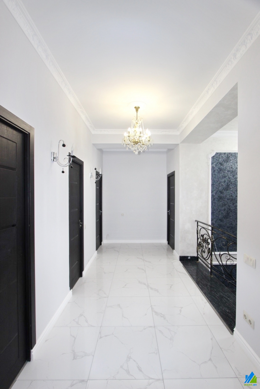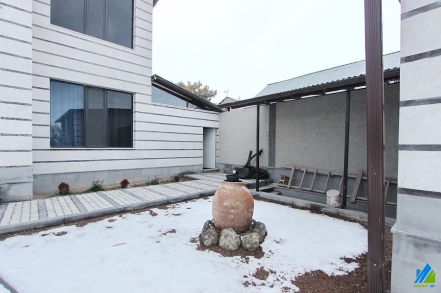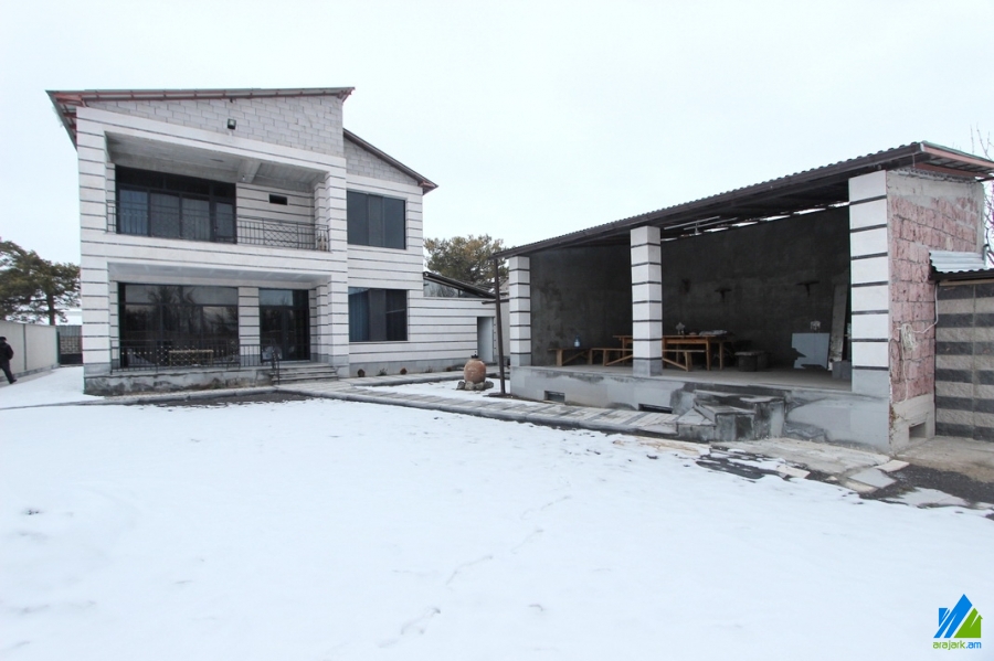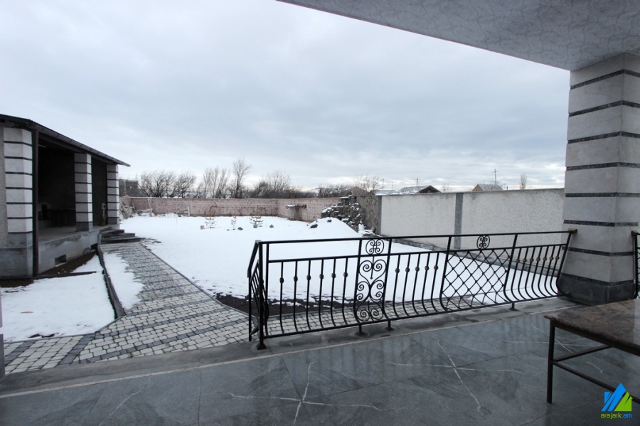 2-storey monolith house for sale in New Artamet village. The rooms quantity is 7 (a hall and 5 bedrooms). The house is modern renovated, the entrance door is iron-made, the windows are euro-based, the floor is covered with solid granite. The bathrooms (4) are combined and modern tiled. The house has a stone fence, terrace, a balcony, a cellar, a garage for 2 cars, a summer house, a landscaped yard with decorative trees, a garden, fruit-full trees, a flower garden, a laundry, heating system and is supplied with constant water and gas. It is being sold with kitchen furniture.