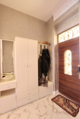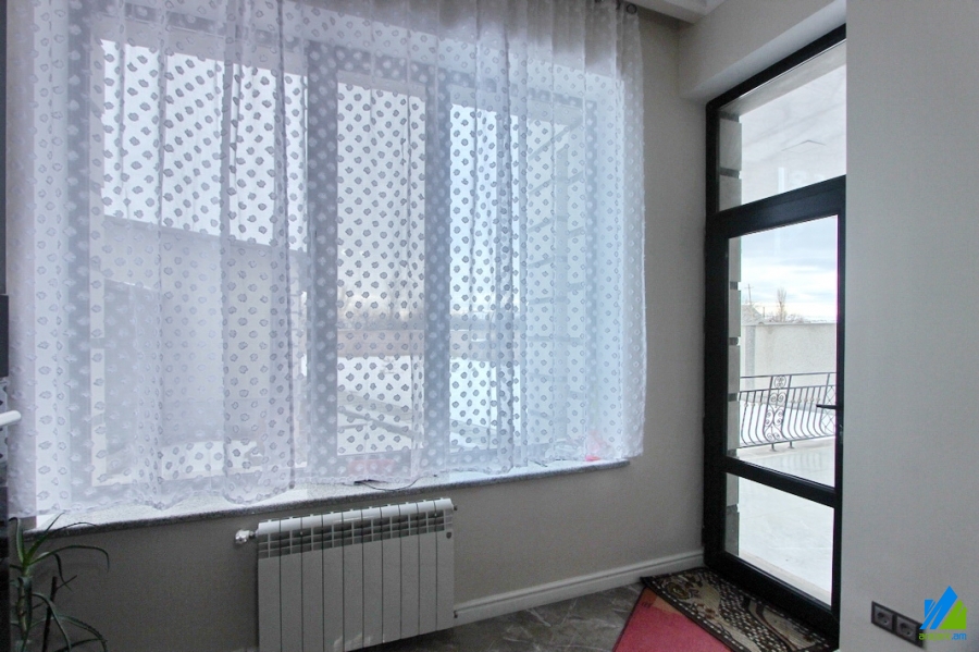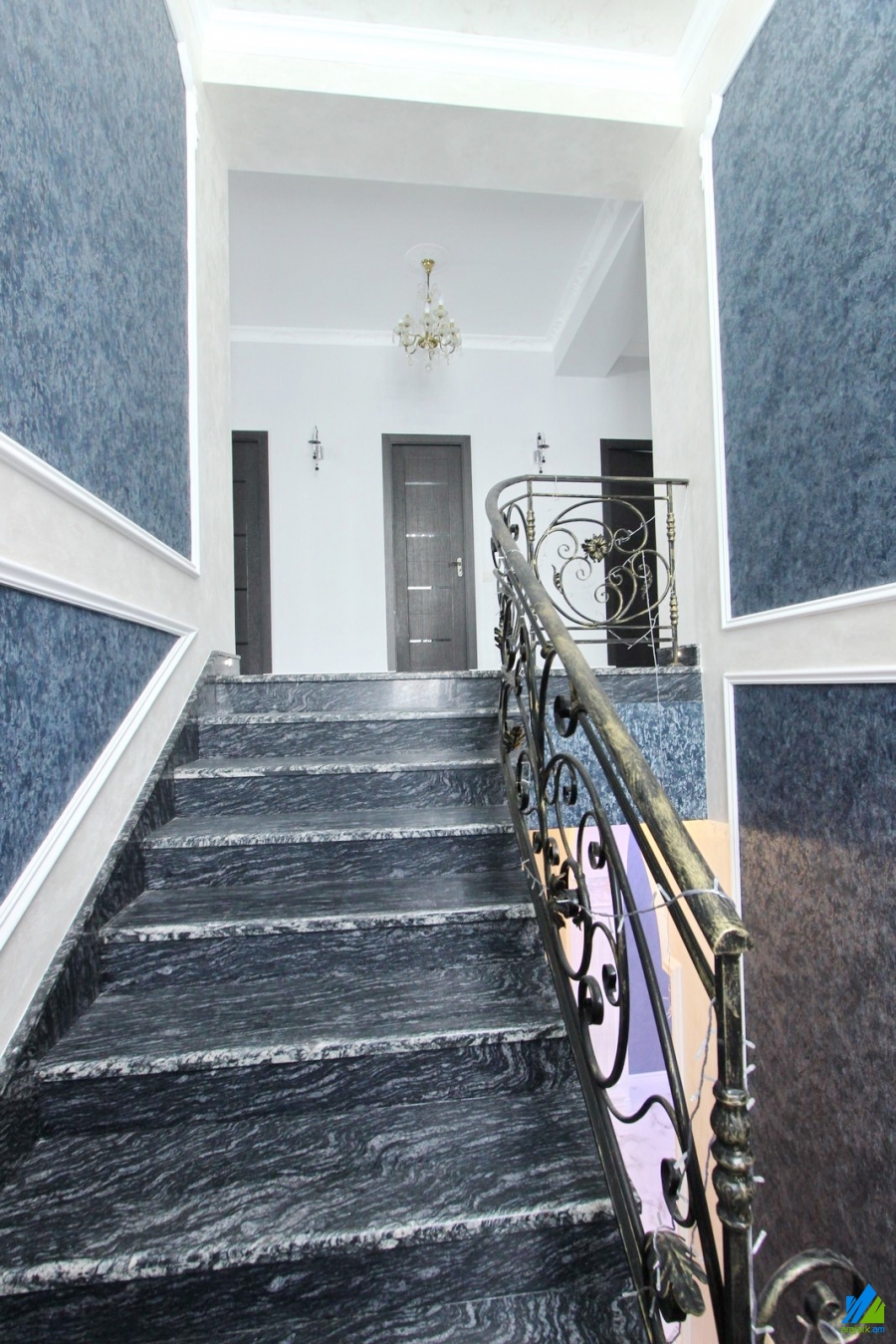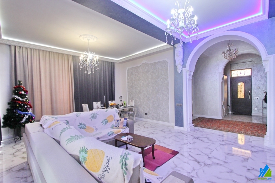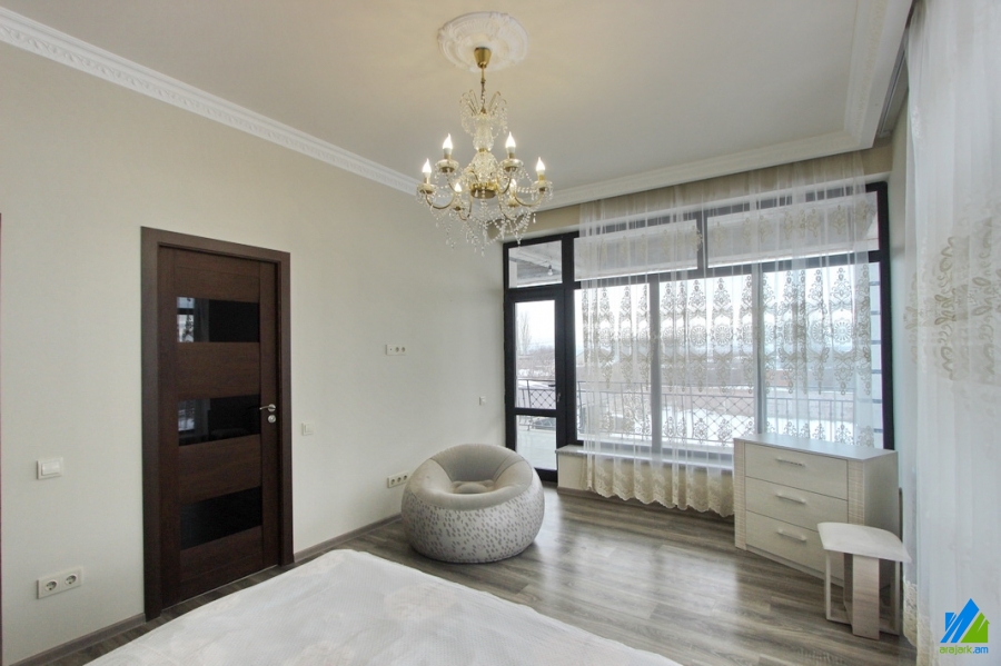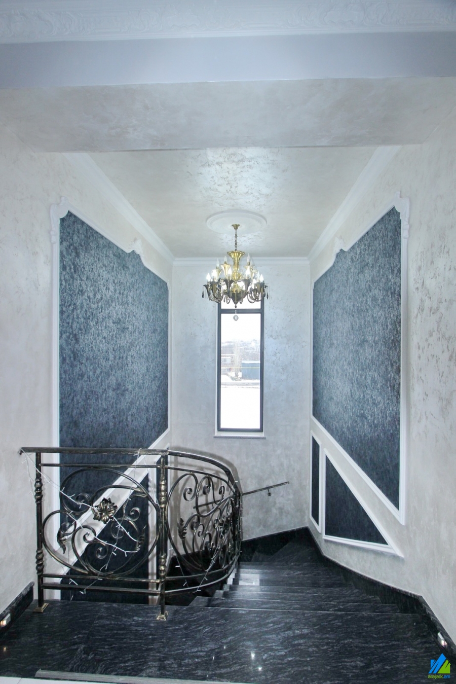 2-storey monolith house for sale in New Artamet village. The rooms quantity is 7 (a hall and 5 bedrooms). The house is modern renovated, the entrance door is iron-made, the windows are euro-based, the floor is covered with solid granite. The bathrooms (4) are combined and modern tiled. The house has a stone fence, terrace, a balcony, a cellar, a garage for 2 cars, a summer house, a landscaped yard with decorative trees, a garden, fruit-full trees, a flower garden, a laundry, heating system and is supplied with constant water and gas. It is being sold with kitchen furniture.