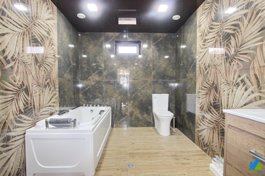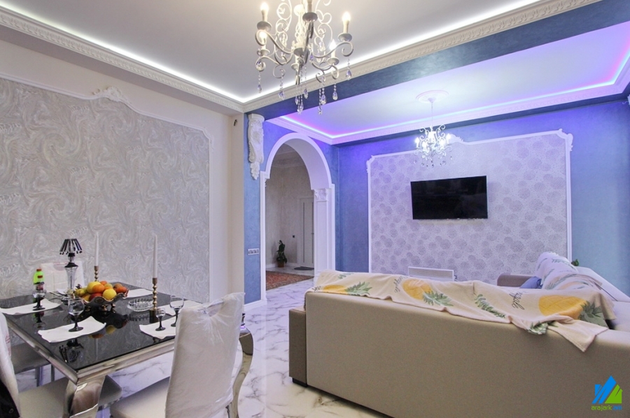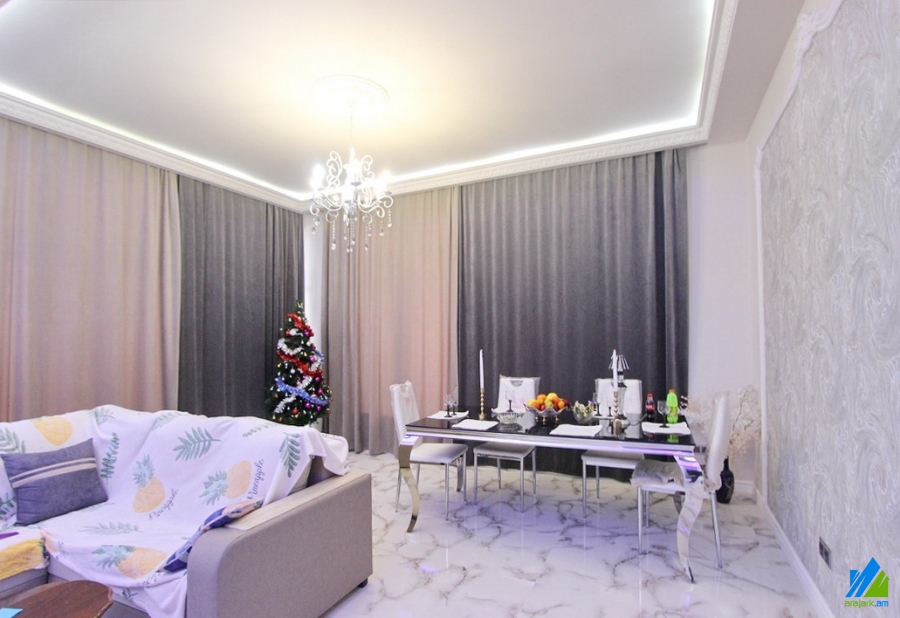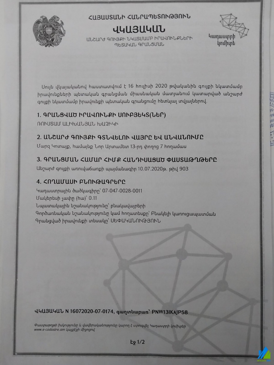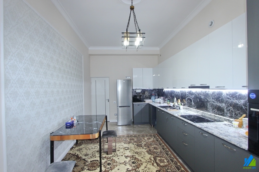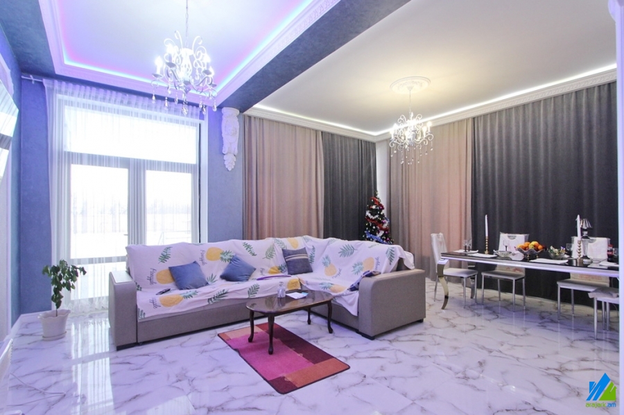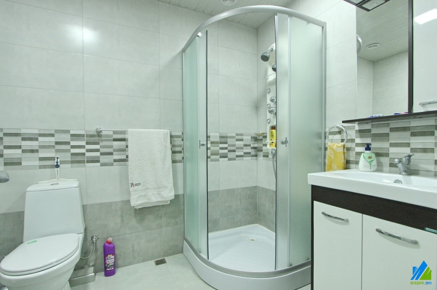 2-storey monolith house for sale in New Artamet village. The rooms quantity is 7 (a hall and 5 bedrooms). The house is modern renovated, the entrance door is iron-made, the windows are euro-based, the floor is covered with solid granite. The bathrooms (4) are combined and modern tiled. The house has a stone fence, terrace, a balcony, a cellar, a garage for 2 cars, a summer house, a landscaped yard with decorative trees, a garden, fruit-full trees, a flower garden, a laundry, heating system and is supplied with constant water and gas. It is being sold with kitchen furniture.