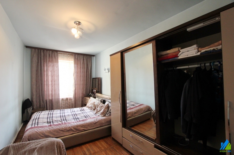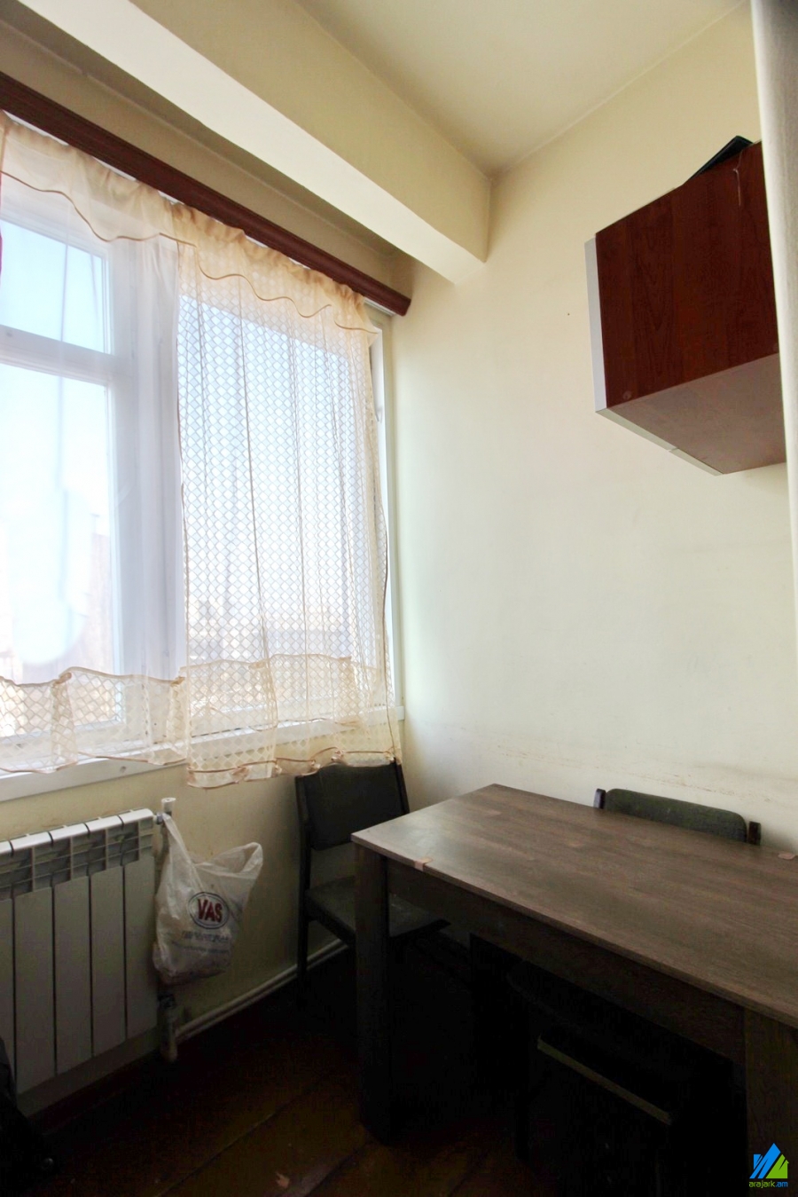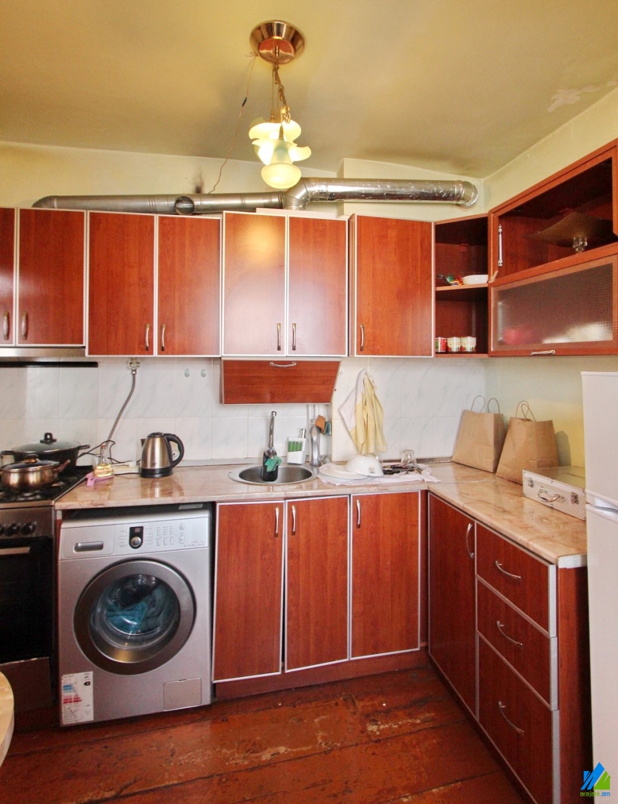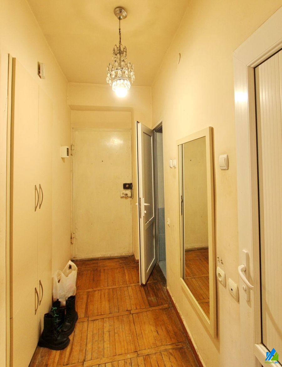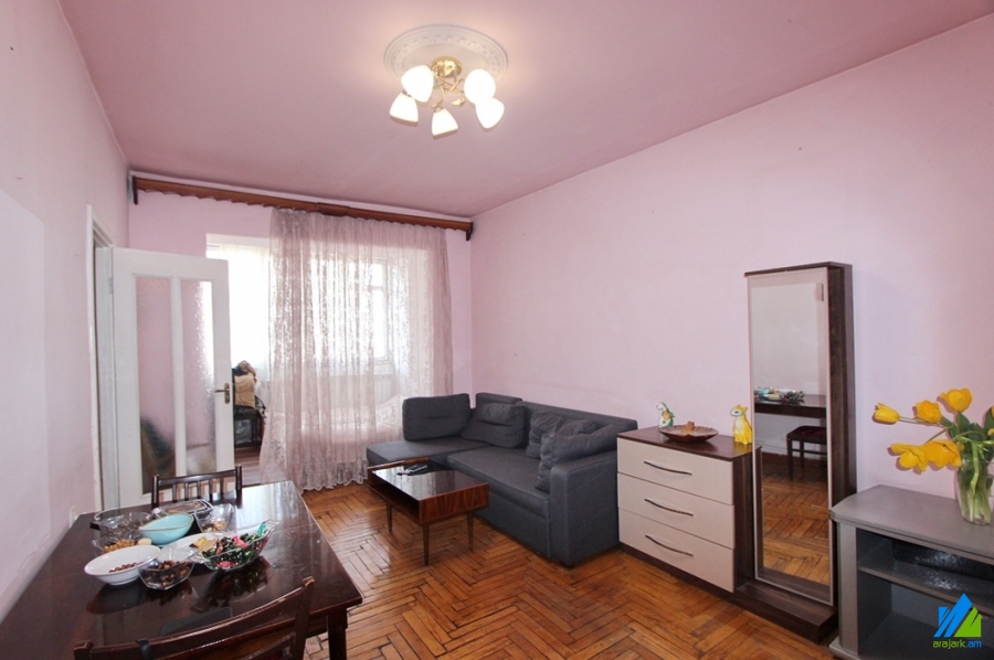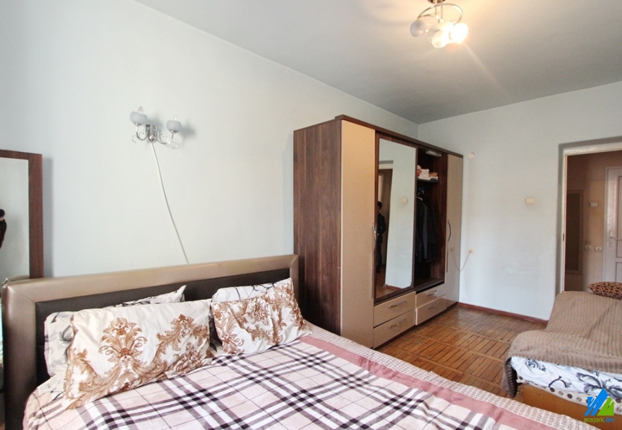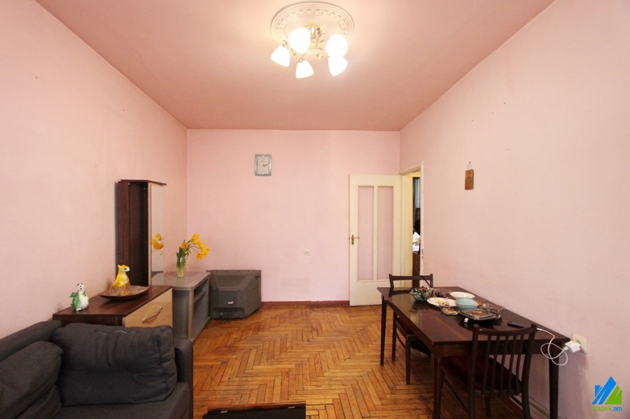 An apartment for sale in Baghyan street. The rooms' quantity is 2 (a hall and a bedroom). The apartment is cosmetically renovated and is located on the top floor of the 5-storey stone building. The entrance door is iron-made, the windows are wooden and euro-based, the floor is covered by parquet. The bathroom is separated and tiled, the electric wires and pipes are newly changed. The apartment has a balcony, heating system and is supplied with constant water and gas. It is being sold with furniture and electronic devices.