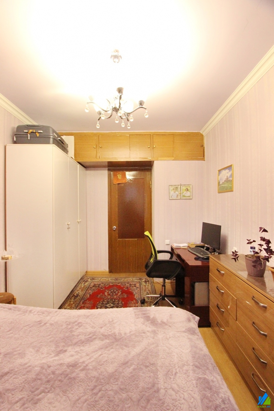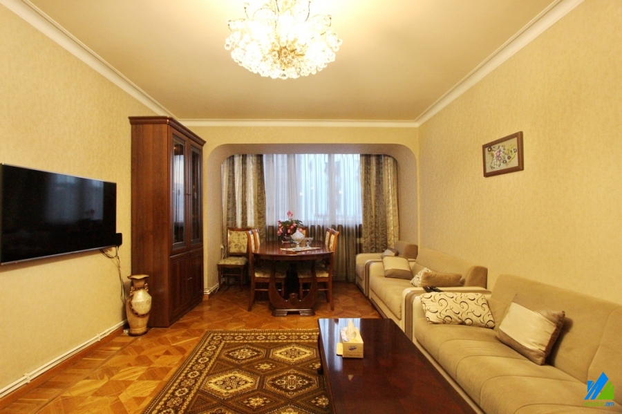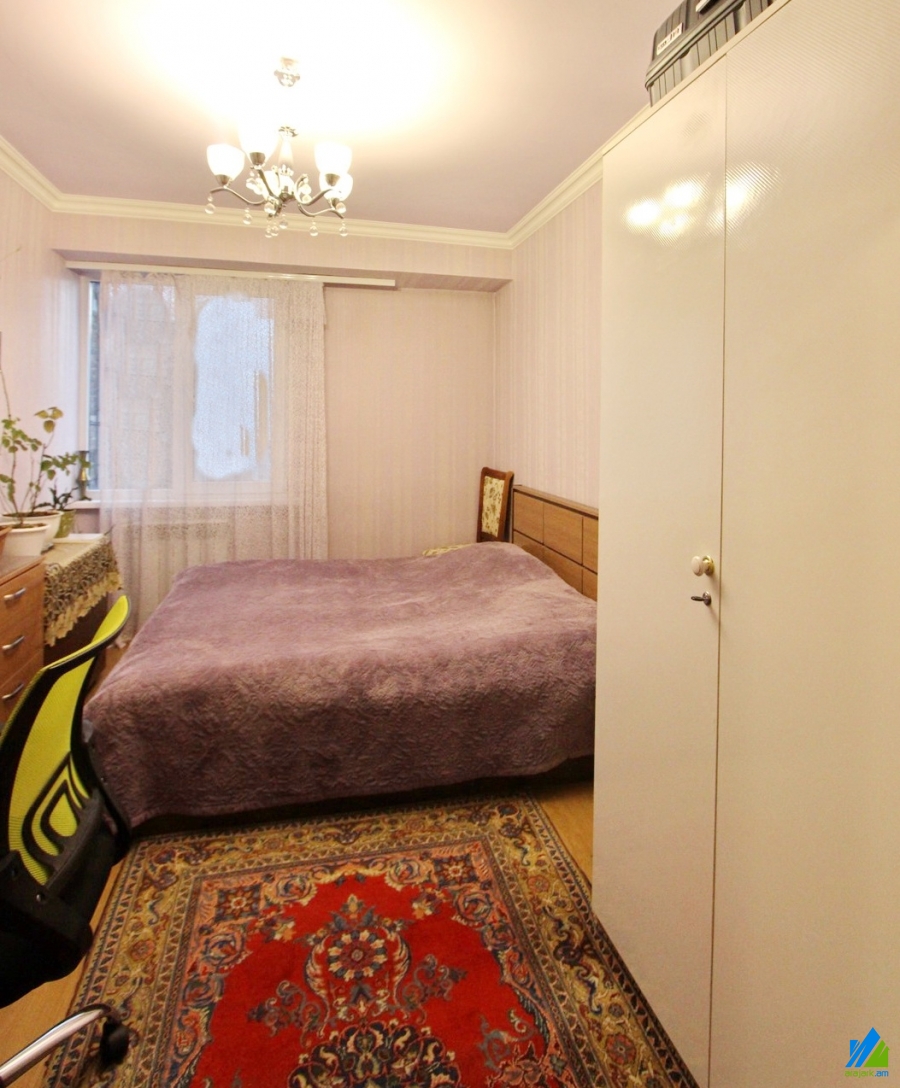 An apartment for sale in Badal Muradyan street. The rooms' quantity is 3 (a hall and two bedrooms). The apartment is partially renovated and is located on 6th floor of the 9-storey building. The entrance door is iron-made, some windows are euro-based, the floor is covered by laminate, parquet. The bathroom is separated and tiled. The apartment has a balcony, heating system and is supplied with constant water and gas. The apartment is being sold with some furniture.