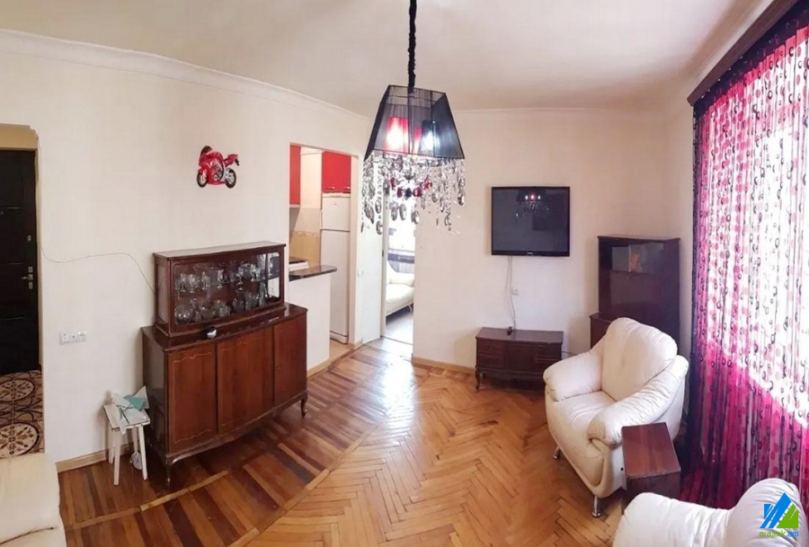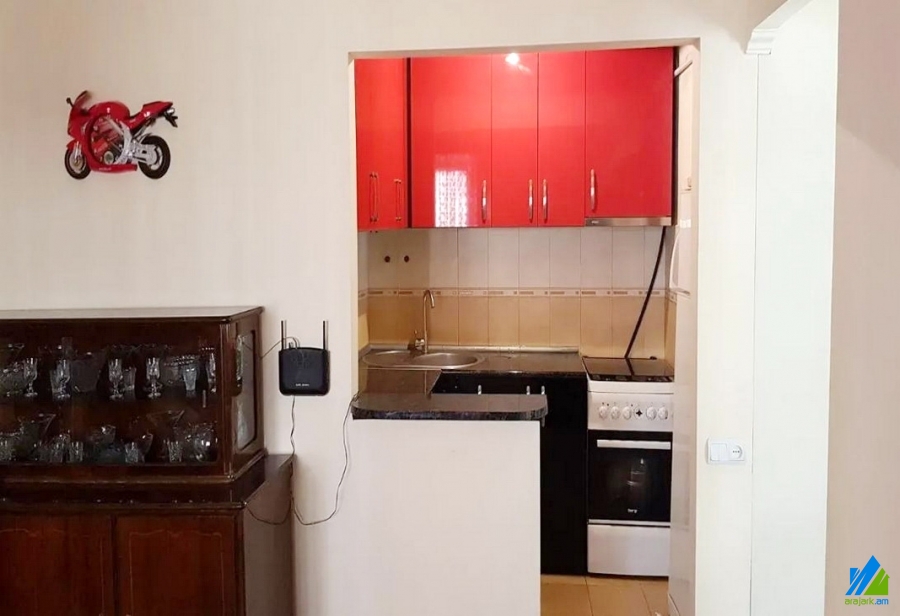 An apartment for sale in Komitas. The rooms' quantity is 1 remodeled into 2(which includes a hall and a bedroom). The apartment is in the middle condition and is located on the top floor of the 5-storey stone building. The entrance door is iron-made, the windows are euro-based, the floor is covered by parquet. The bathroom is combined and is tiled. The apartment has a balcony, storage-rooms(2), built-in closet and is supplied with constant water and gas.