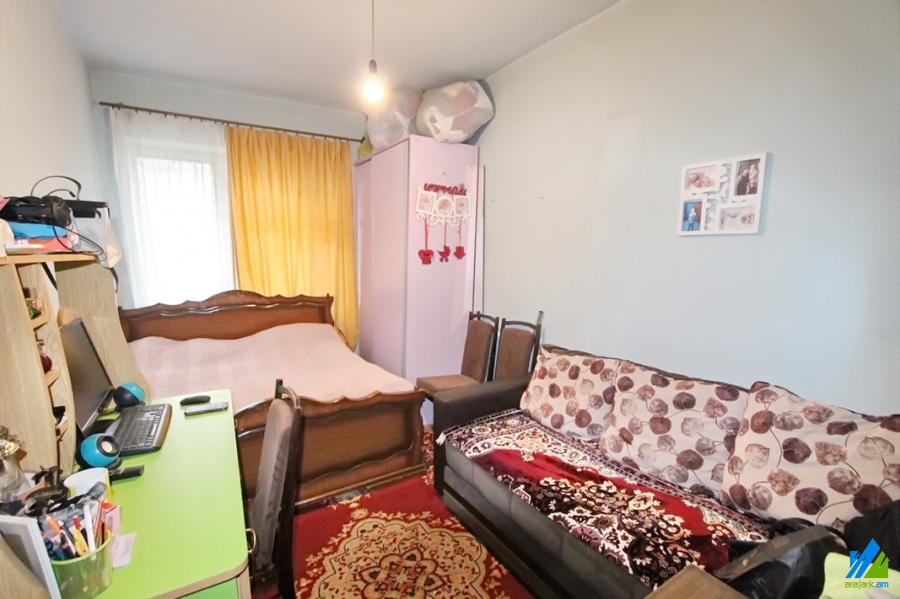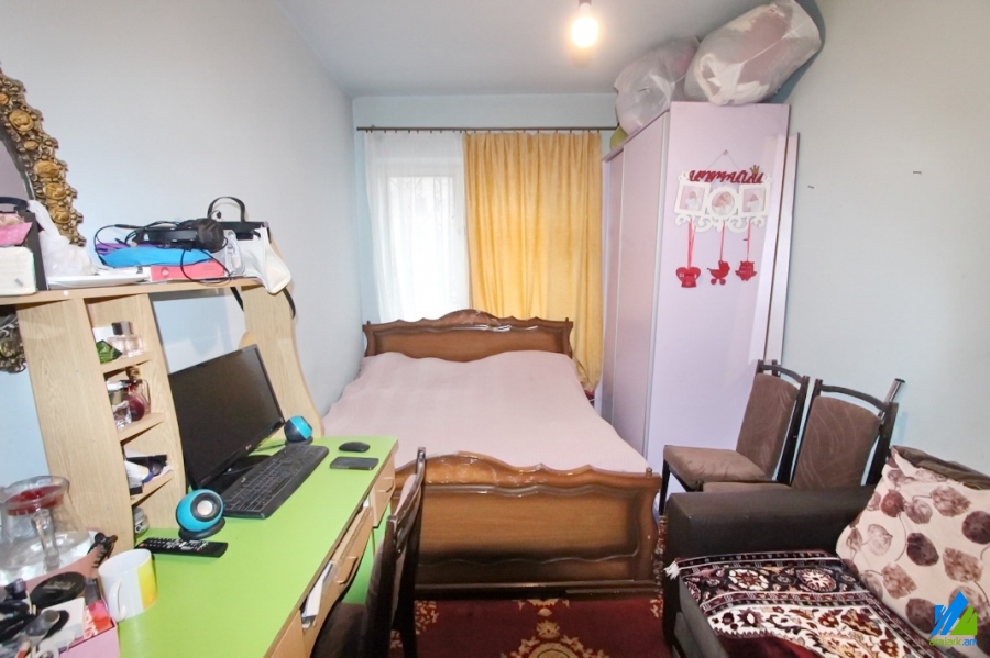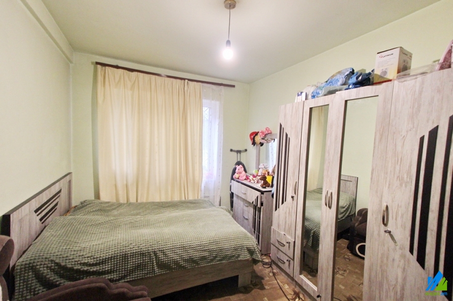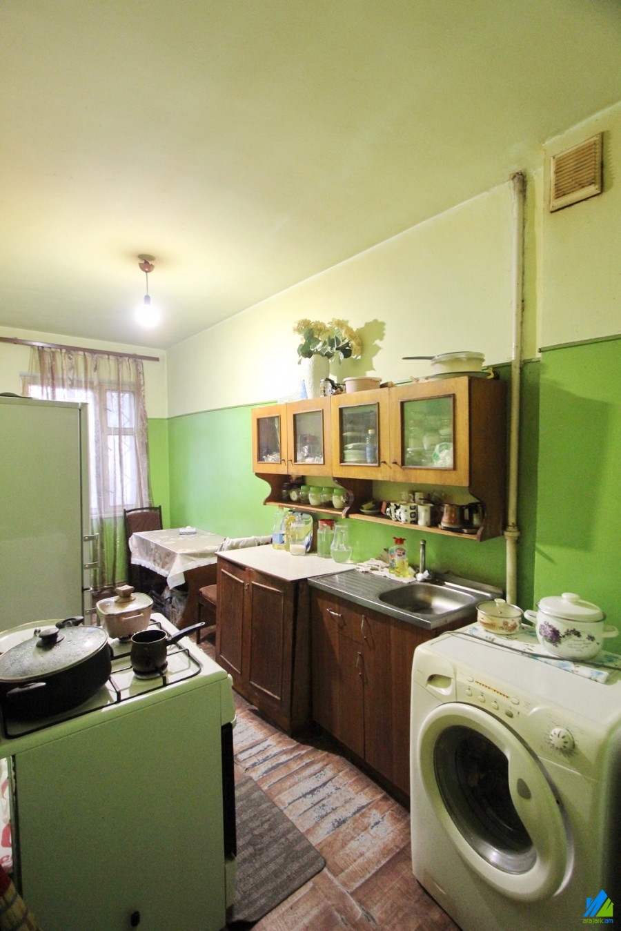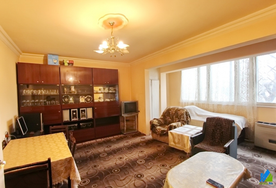 An apartment for sale in Vilnyus Street. The rooms' quantity is 3(which includes a hall and 2 bedrooms). The apartment is in the middle condition and is located on the high-rise ground floor of the 5-storey building. The entrance door is iron-made, the windows are euro-based, the floor is covered by parquet. The bathroom is separate and former tiled. The apartment has a balcony, a cellar(10sq.m.), turbo heating system and is supplied with constant water and gas. It is being sold with partial furniture.