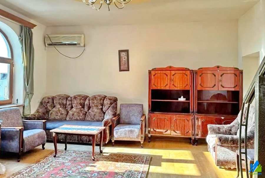 An apartment for rent in Koryun Street. The rooms' quantity is 4 ( a hall and 3 bedrooms ). The apartment is in the middle condition and is located on the top floor of the 5-storey stone building, that is stationed on the first line. The entrance door is iron-made, the windows are euro-based, the floor is covered with parquet, laminate. The bathrooms(2) is combined and newly tiled. The apartment has a balcony, heating system and is supplied with constant water and gas. It is being rent with furniture and electronic devices.