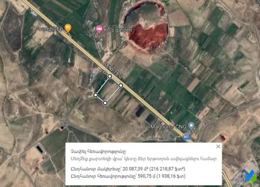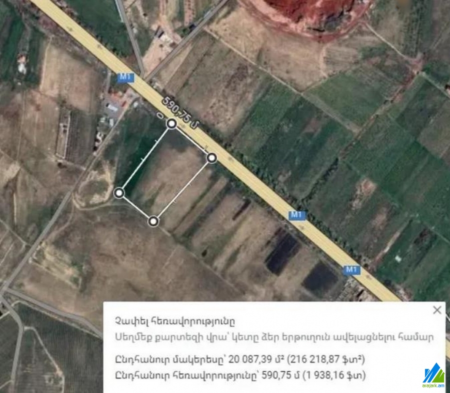 An agricultural meaning plot for sale in Proshyan Village. It is located on the north-south highway (M1), that is stationed on the first line.