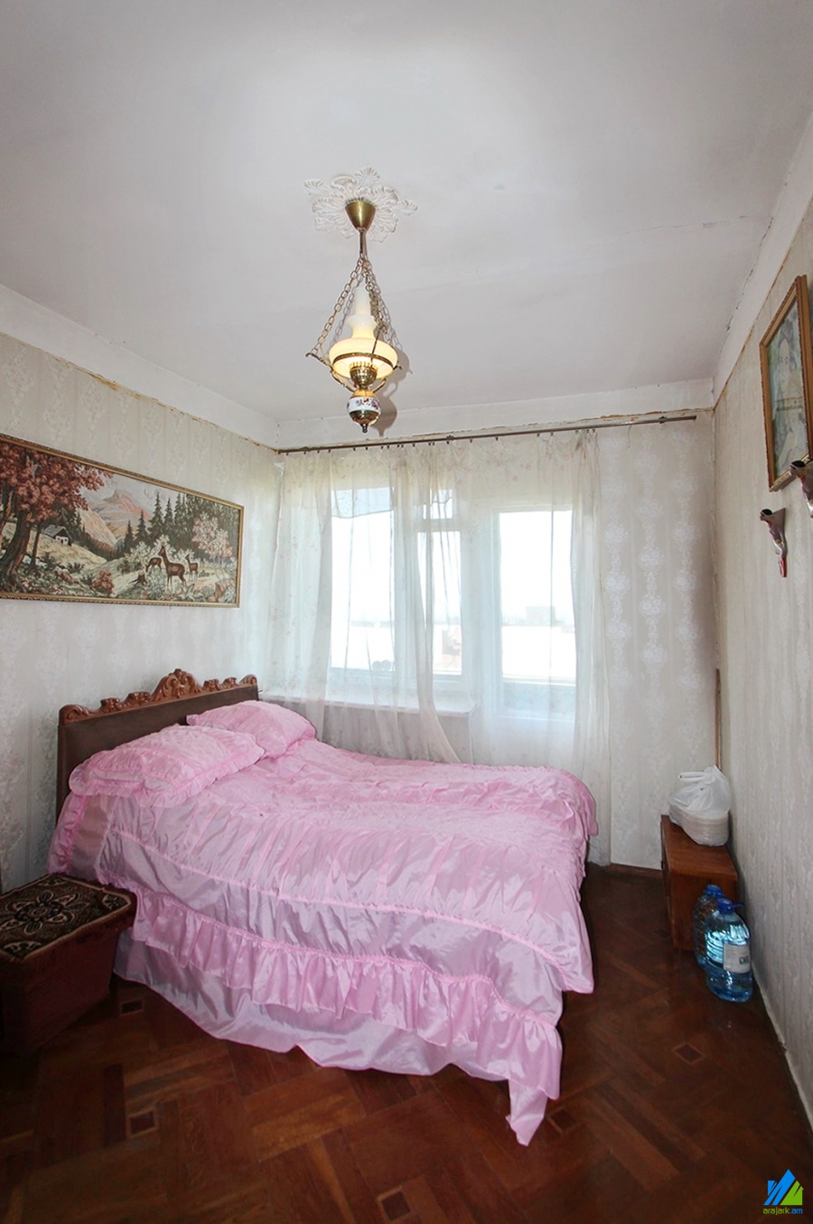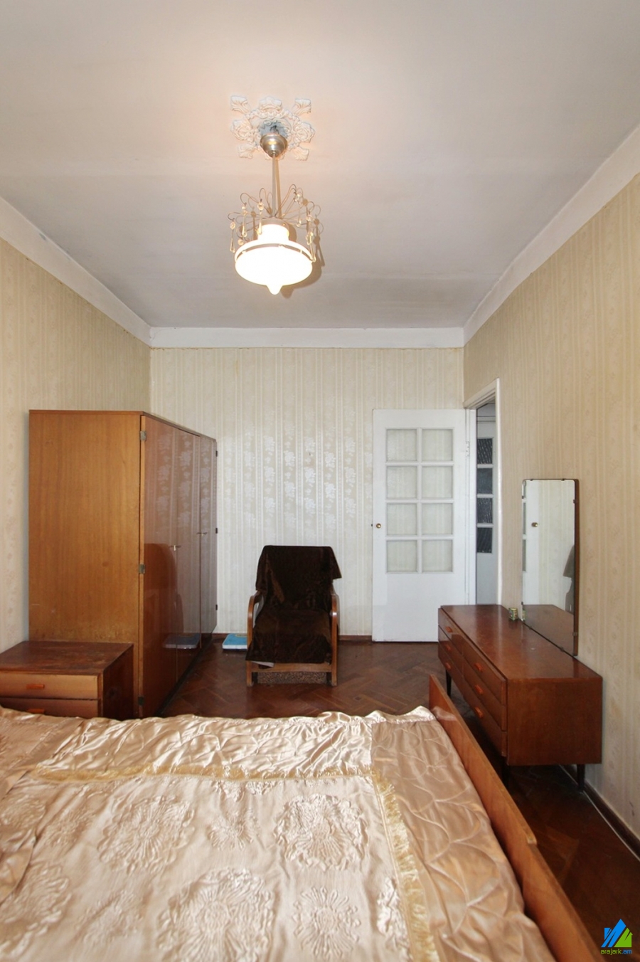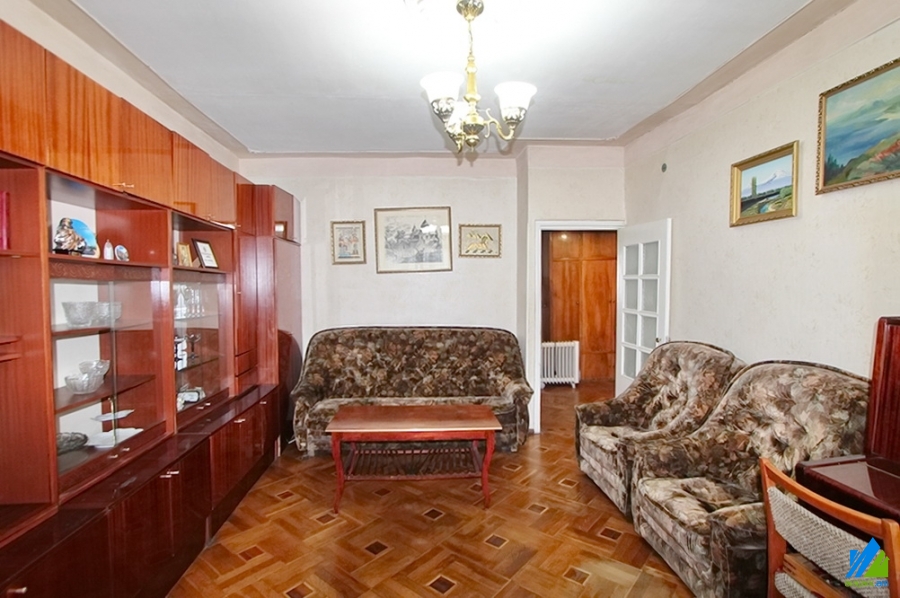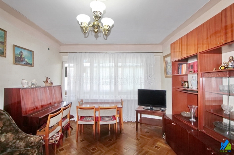 An apartment for sale in Gyuliqexvyan Lane. The rooms' quantity is 3( a hall and 2 bedrooms). The apartment is middle renovated and is located on the top floor of the 5-storey stone building. The entrance door is wooden-made, the windows are wooden, the floor is covered with parquet. The bathroom is combined and newly tiled. It has balconies, and is supplied with constant water and gas. It is being sold with furniture and technique.