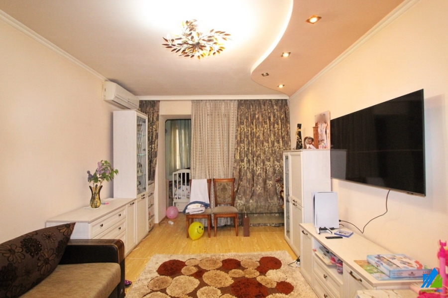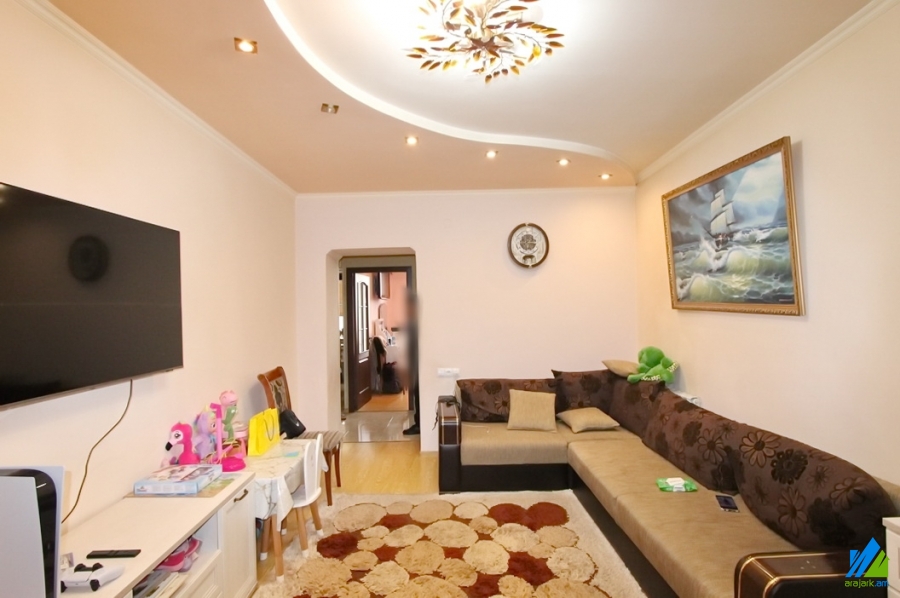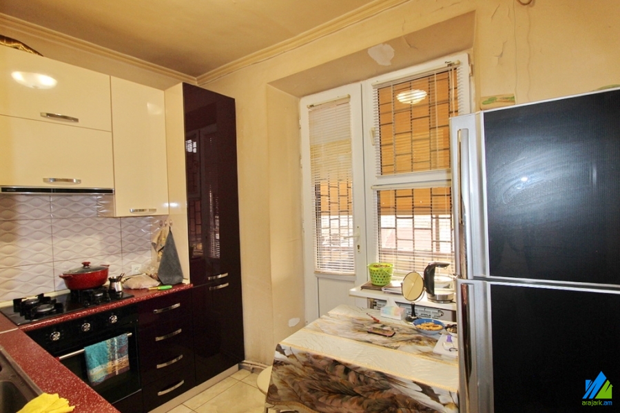 An apartment for sale in Totovents Street. The rooms' quantity is 2 remodeled into 3(a hall and 2 bedroom). The apartment is capitally renovated and is located on the 5th floor of the 5-storey stone building. The entrance door is iron-made, the windows are euro-based, the floor is covered by laminate and is tiled. The bathroom is combined and newly tiled. It has two balconies, heating system and is supplied with constant water and gas. It is being sold with partial furniture.