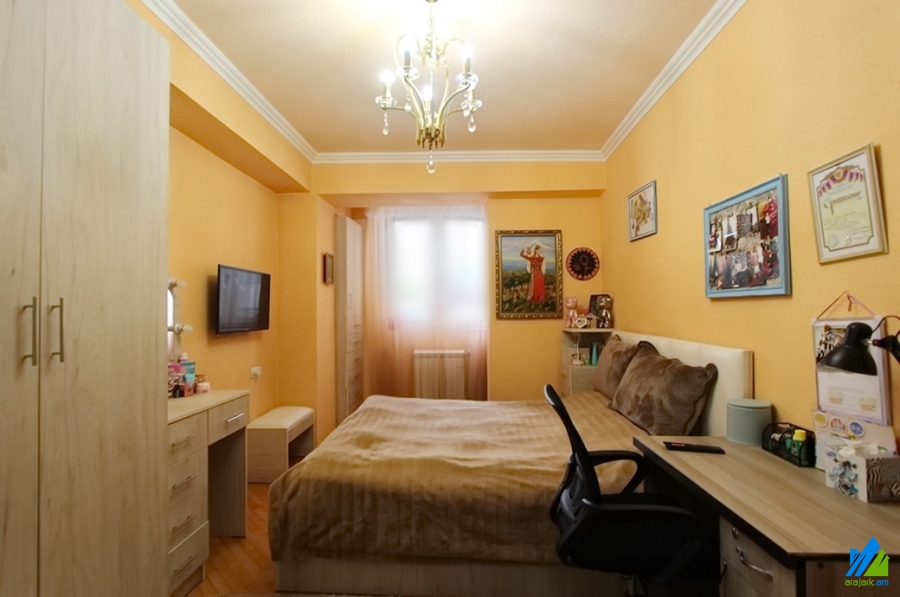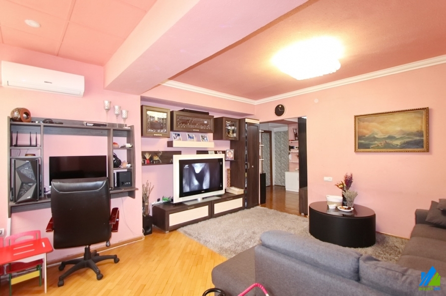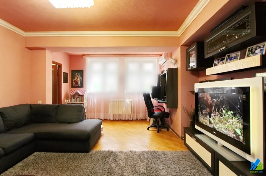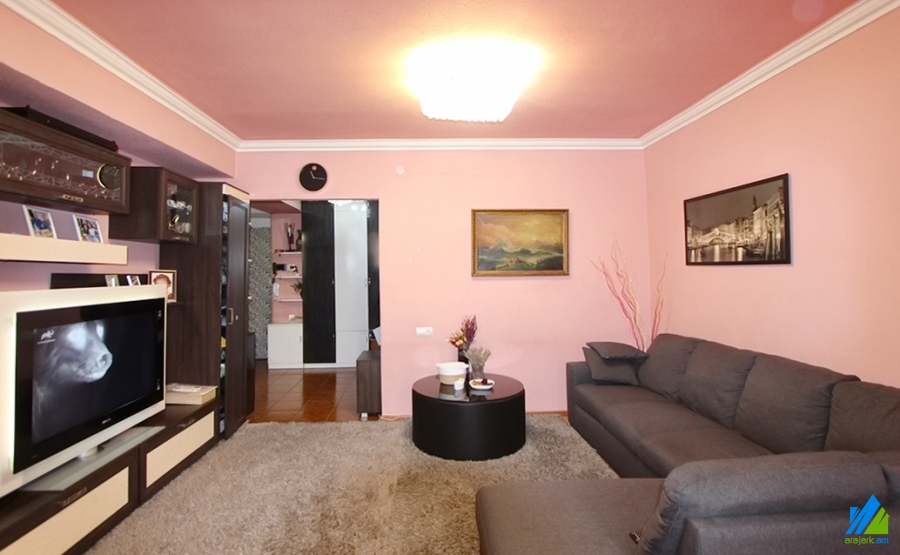 An apartment for sale in Gulakyan Street. The rooms' quantity is 2 room apartment remodeled into 3. The apartment is newly renovated and is located on the high-rise ground floor of the 14-storey building. The entrance door is iron-made, the windows are euro-based, the floor is covered with parquet, solid granite. The bathroom is separate and is tiled. The apartment has a balcony, cellar (20 s.q.), storage-room, heating system and is supplied with constant water and gas. The apartment is being sold with kitchen furniture and built-in closets.