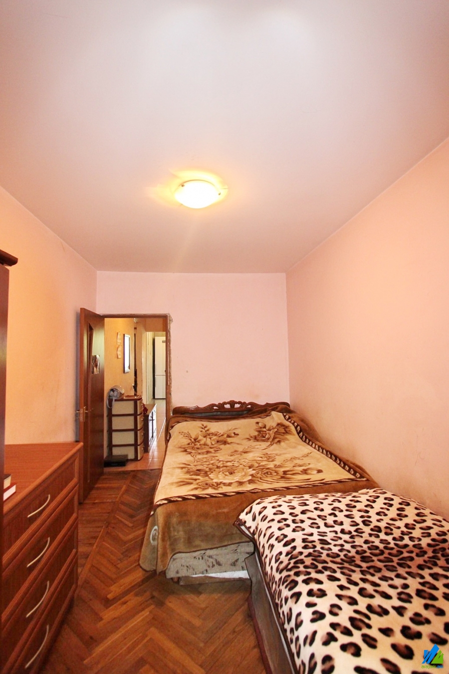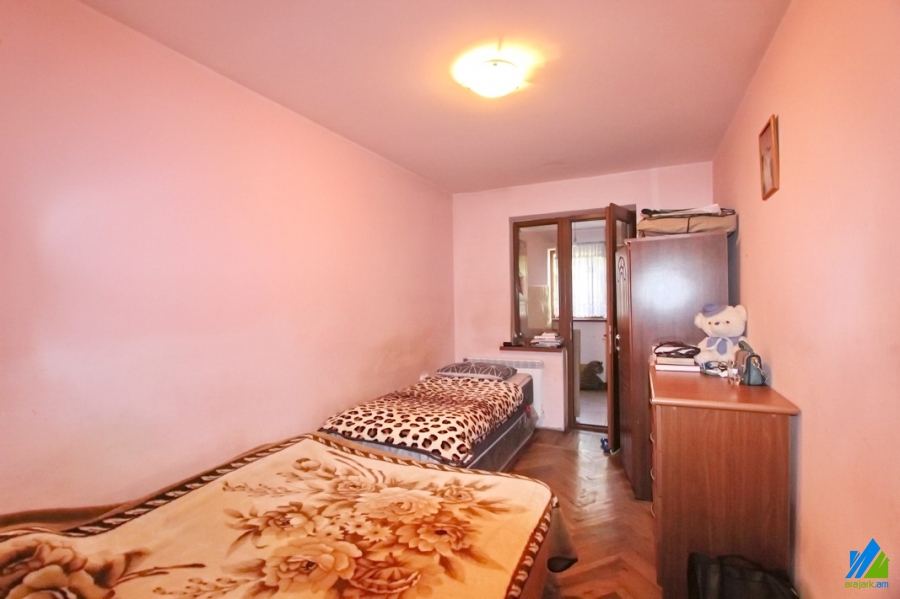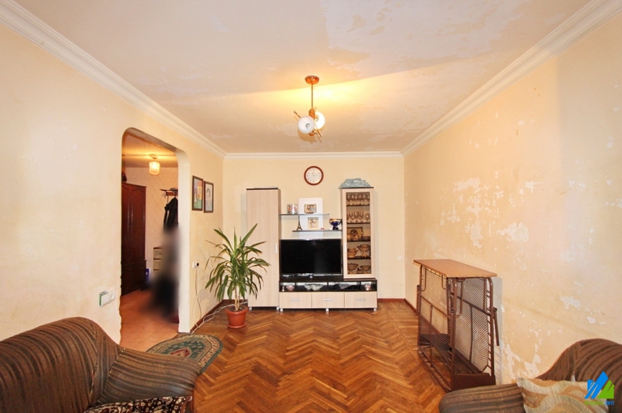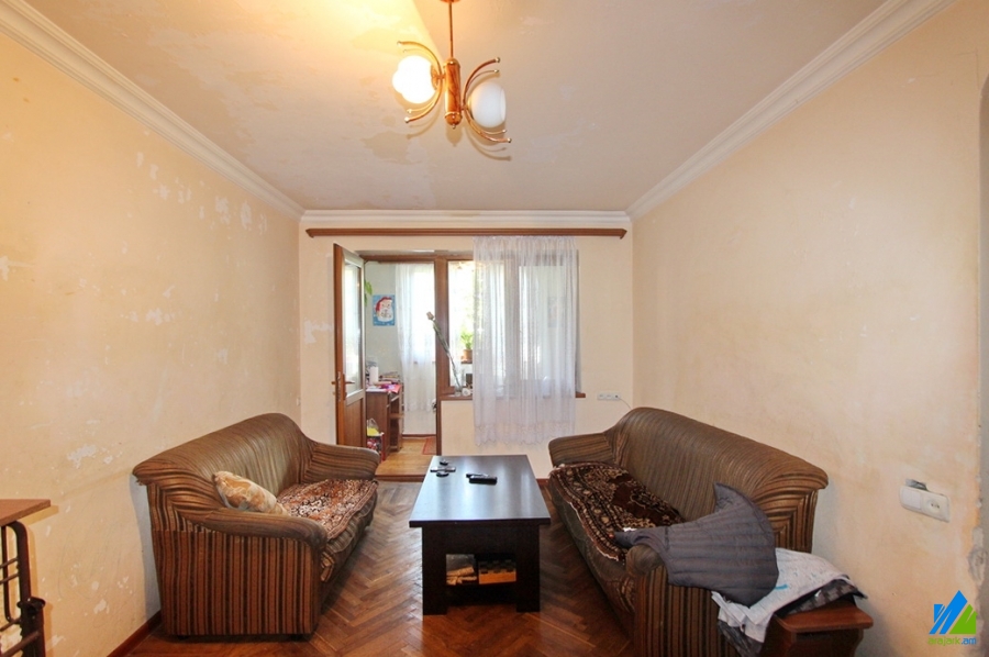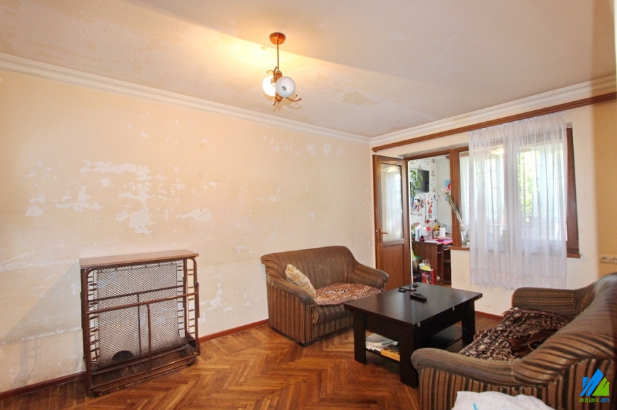 An apartment for sale in Moldovakan Street. The rooms' quantity is 2(which includes a hall and a bedroom). The apartment is in the middle condition and is located on the high-rise ground floor of the 5-storey building. The entrance door is iron-made, the windows are euro-based, the floor is covered by parquet and is tiled. The bathroom is combined and is tiled, the electric wires and pipes are newly changed. The apartment has a balcony(2), heating system and is supplied with constant water and gas. It is being sold with partial furniture.
