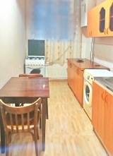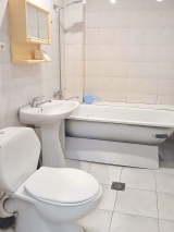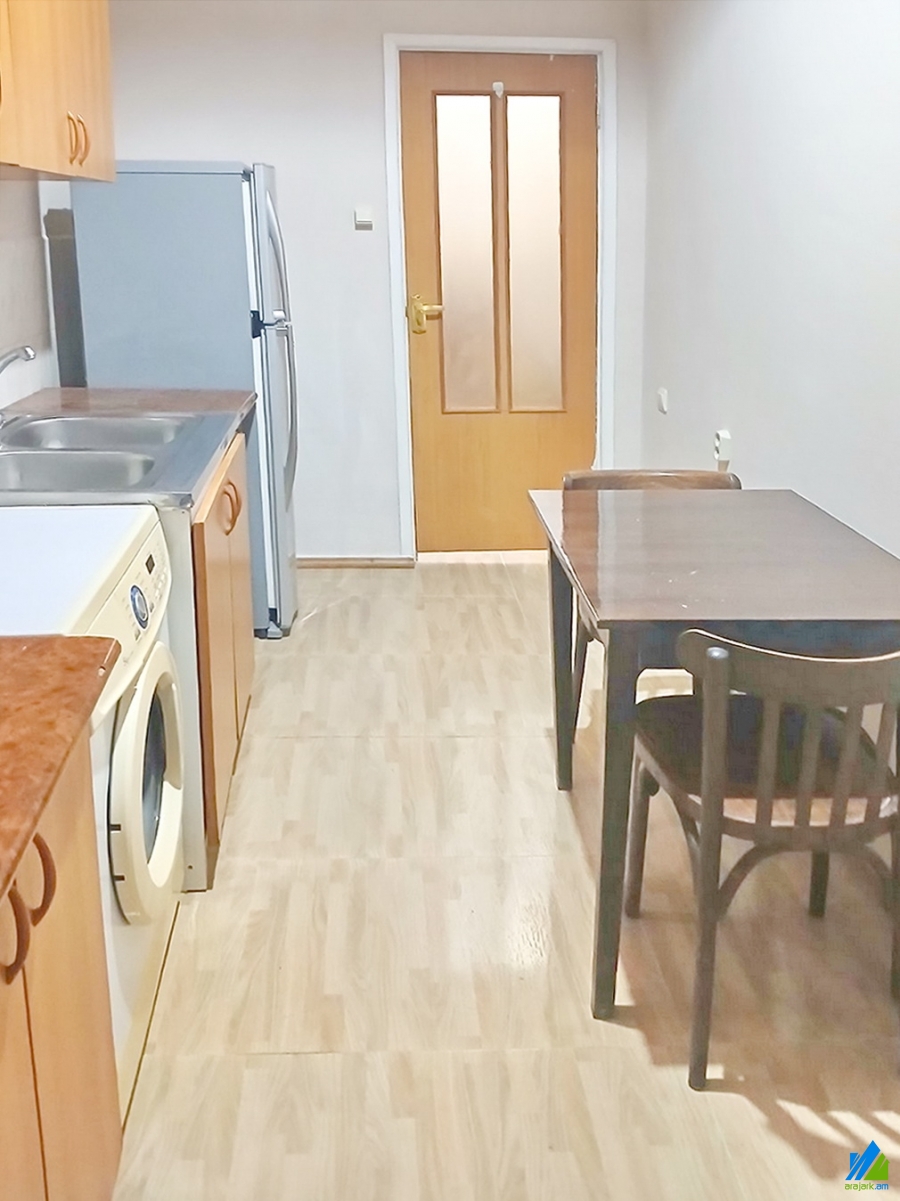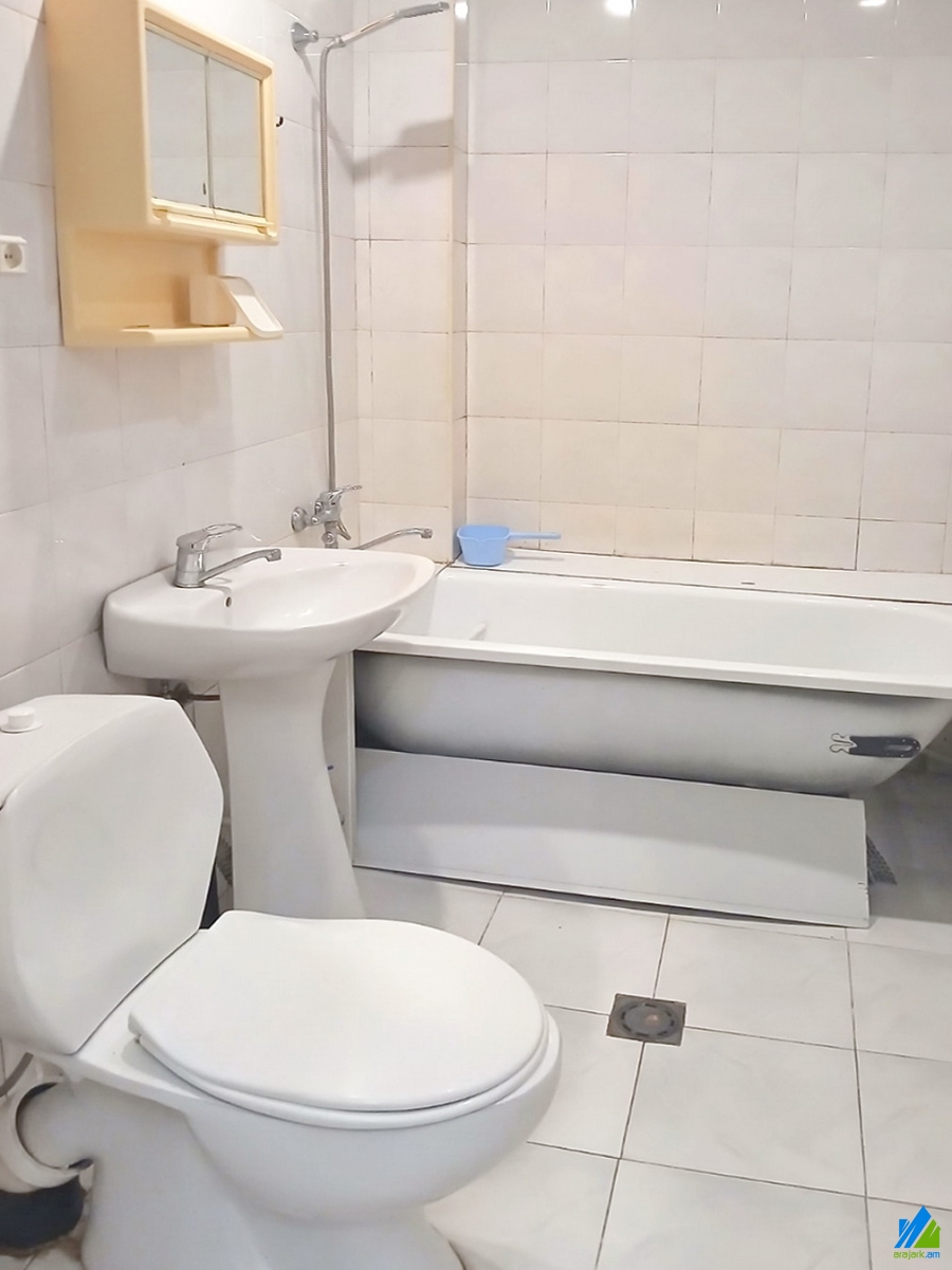 An apartment for rent in Bakunc Street. The rooms' quantity is 1 (a hall). The apartment is cosmetically renovated and is located on the ground floor of the 5-storey stone building. The entrance door is iron-made, the windows are wooden-based, the floor is covered with parquet. The bathroom is combined and tiled. It has a balcony, heating system and is supplied with constant water and gas. It is being rent with furniture and electronic devices.