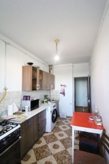 An apartment for sale in Minski Street. The rooms' quantity is 4 (a hall and 3 bedrooms). The apartment is cosmetically renovated and is located on the 8th floor of the 9-storey building. The entrance door is iron-made, the windows are euro-based, the floor is covered with laminate, solid-granite. The bathroom is combined and tiled. The apartment has a balcony, storage room, heating system and is supplied with constant water and gas. It is being sold with partial furniture.