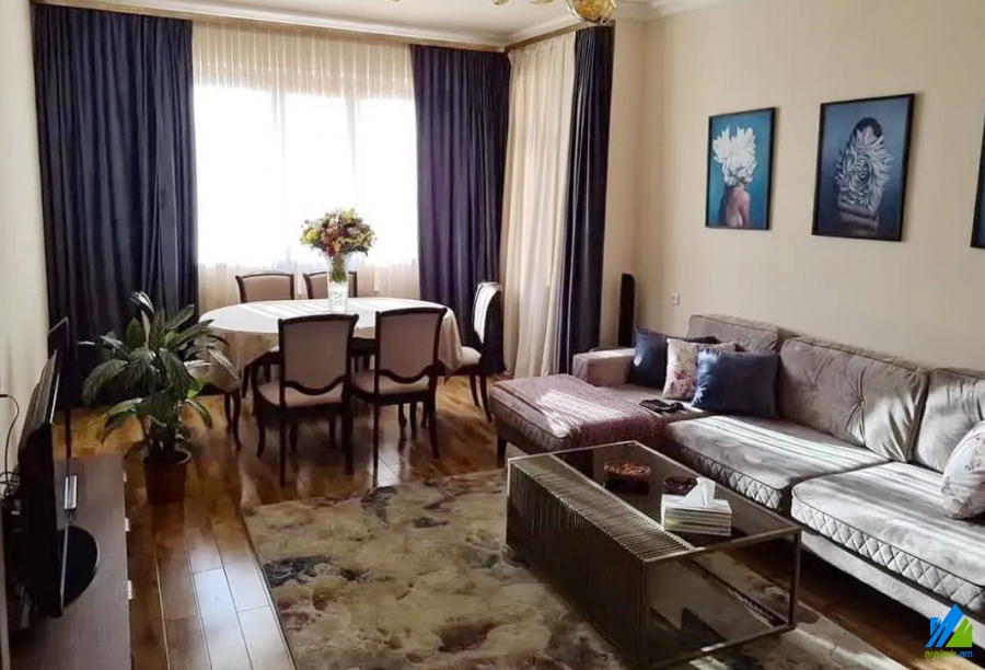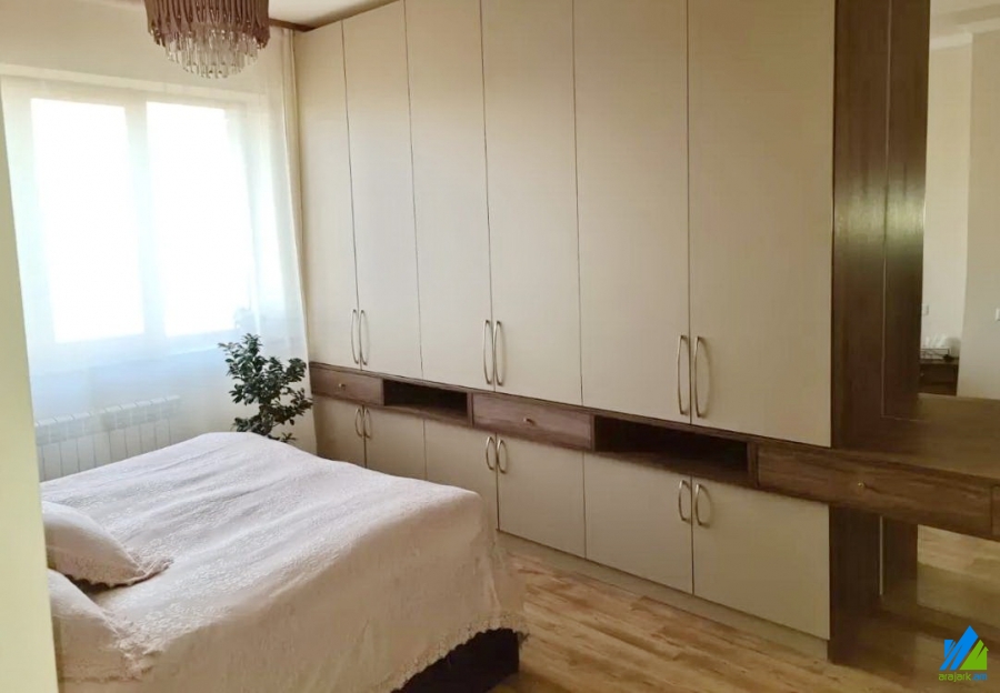 An apartment for rent in Tsarav-Axbyur. The rooms’ quantity is 3 (a hall and 2 bedrooms). It is newly renovated and is located on the 5th floor of 14-storey new-built building. The entrance door is iron-made, the windows are euro-based, the floor is covered by laminate and is tiled. The bathroom is combined and newly tiled. The apartment has a balcony, heating system and is supplied with constant water and gas. It is being rented with furniture and technique.
