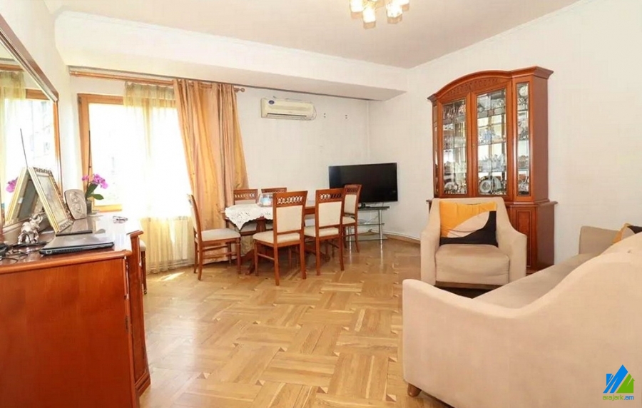 An apartment for sale in Simon Vracyan Street. The rooms' quantity is 3(which includes a hall and 2 bedrooms). The apartment is cosmetically renovated and is located on the 4th floor of the 14-storey building. The entrance door is iron-made, the windows are euro-based, the floor is covered by parquet. The bathroom is separate and is tiled. The apartment has a balcony and heating system. It is being sold with furniture and technique.
