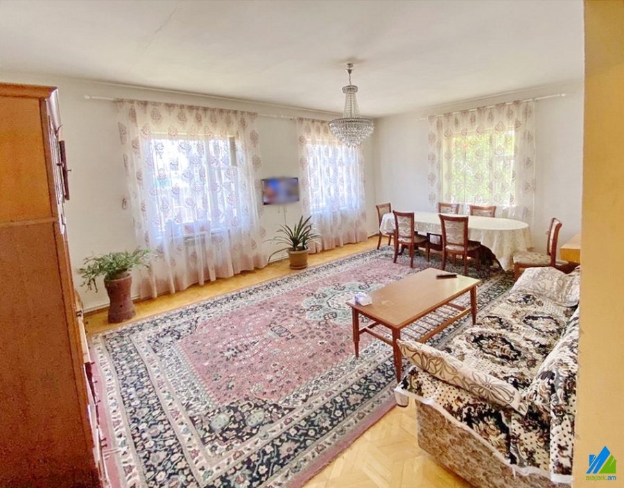 A 2-storey stone house for sale in Arinj Village. The rooms' quantity is 8(a hall and 4 bedrooms). The house is cosmetically renovated. The entrance door is iron-made, the windows are wooden-based, the floor is covered by parquet. The bathroom is separate. The house has a stone fence, cellar(145qs.m.) garden, fruitful trees. It is being sold with partial furniture.